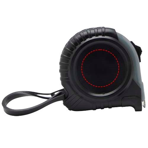 5 Meter Maßband mit Zentimeter- und Inch-Anzeige, dazu ein praktischer Gürtelclip für einfaches Mitnehmen.