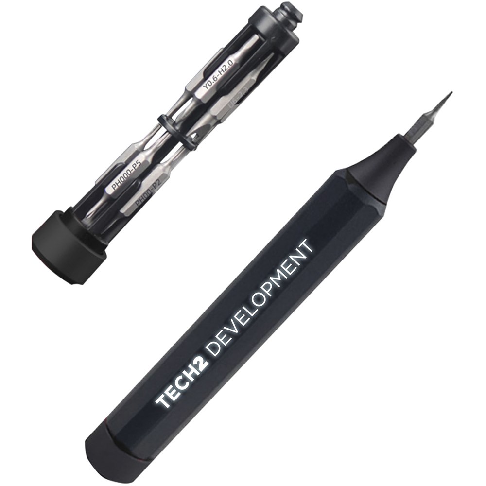 Präzisionsschraubendreher-Set aus Aluminium mit 10 versteckten Doppelkopf-Bits. Die verschiedenen Bits werden mit einer magnetischen Funktion am Schraubendreherstift befestigt und können für die meisten technischen Geräte verwendet werden. Dieses Produkt kann mit einer Lasergravur individuell gestaltet werden. Wird in einer recycelten Papier- Geschenkbox geliefert.