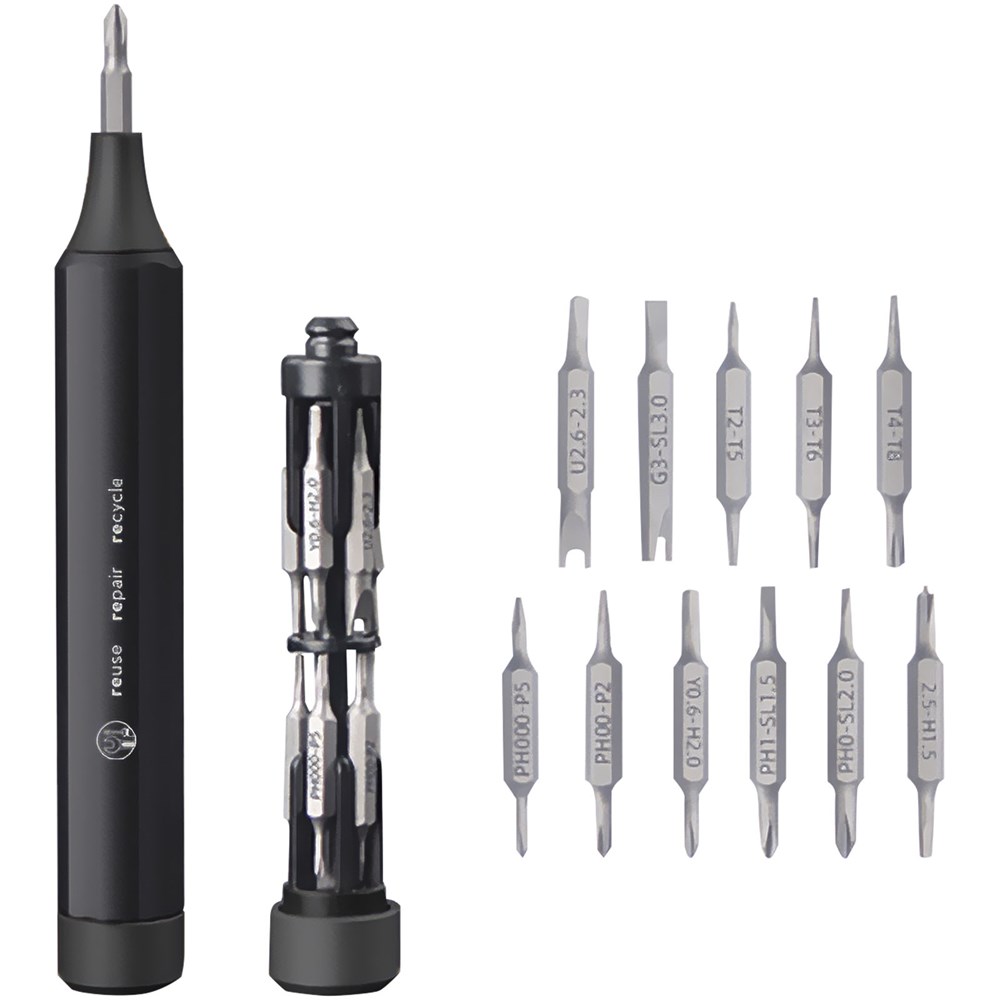 Präzisionsschraubendreher-Set aus Aluminium mit 10 versteckten Doppelkopf-Bits. Die verschiedenen... mehr