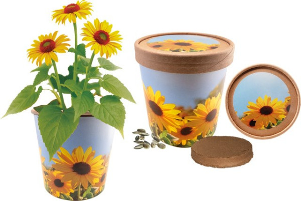 Inhalt: Erdtablette, Samen: Zwergsonnenblume