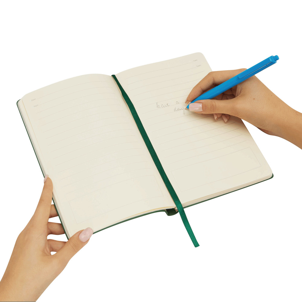 Kugelschreiber STACCATO: mit Schaft aus recyceltem Kunststoff, geriffelte Griffzone, Druckmechanismus, blauschreibend