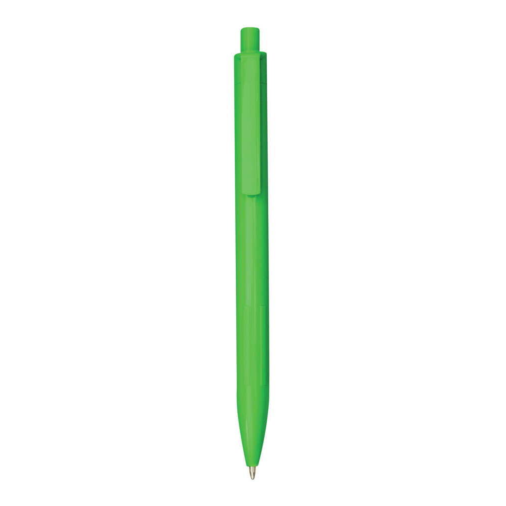 Kugelschreiber STACCATO: mit Schaft aus recyceltem Kunststoff, geriffelte Griffzone, Druckmechanismus, blauschreibend