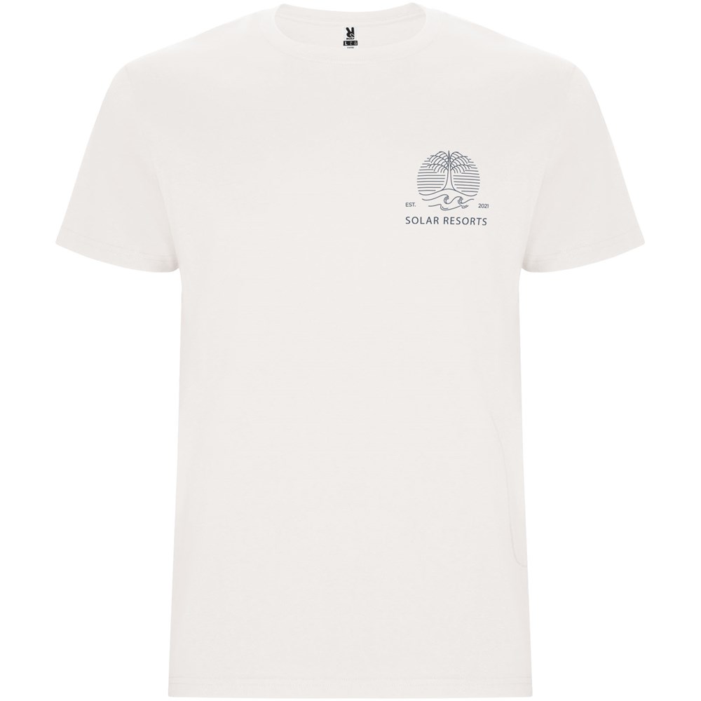 Schlauchförmiges kurzärmeliges T-Shirt. Rundhalsausschnitt mit Elasthan. Herausnehmbares Etikett.