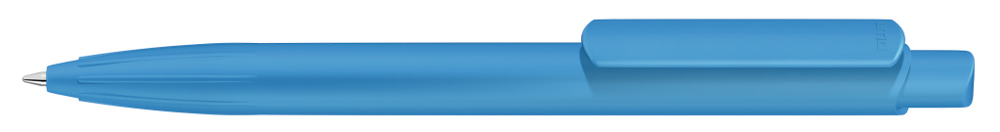 Druckkugelscheiber mit gedeckt mattem Gehäuse, Clip und Drücker aus recyceltem ABS-Kunststoff. Eingelassene Griffzone.