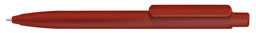 Druckkugelscheiber mit gedeckt mattem Gehäuse, Clip und Drücker aus recyceltem ABS-Kunststoff. Eingelassene Griffzone.
