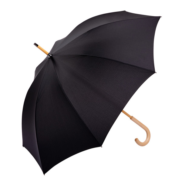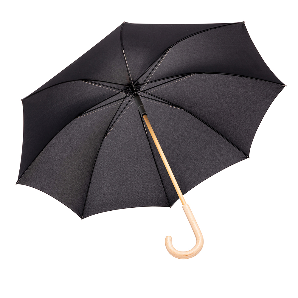 Dieser Regenschirm hat eine Bespannung aus 190T rPET Soft-Pongee und einen Durchmesser von ca. 105 cm. Mit einer geschlossenen Länge von ca. 88 cm lässt er sich dank der EASY OPEN Öffnungsmechanik schnell und einfach öffnen. Der Schirm verfügt über 8 stabile Segmente und 58,5 cm lange Fiberglasspeichen für zusätzliche Flexibilität. Der robuste 14 mm Holzschaft sorgt für Haltbarkeit, während der gebogene Holzgriff für eine angenehme Handhabung sorgt. Ausgestattet mit Metalltips und einer Holzspitze sowie einer Windproof-Funktion, ist der Schirm besonders widerstandsfähig gegen starken Wind.