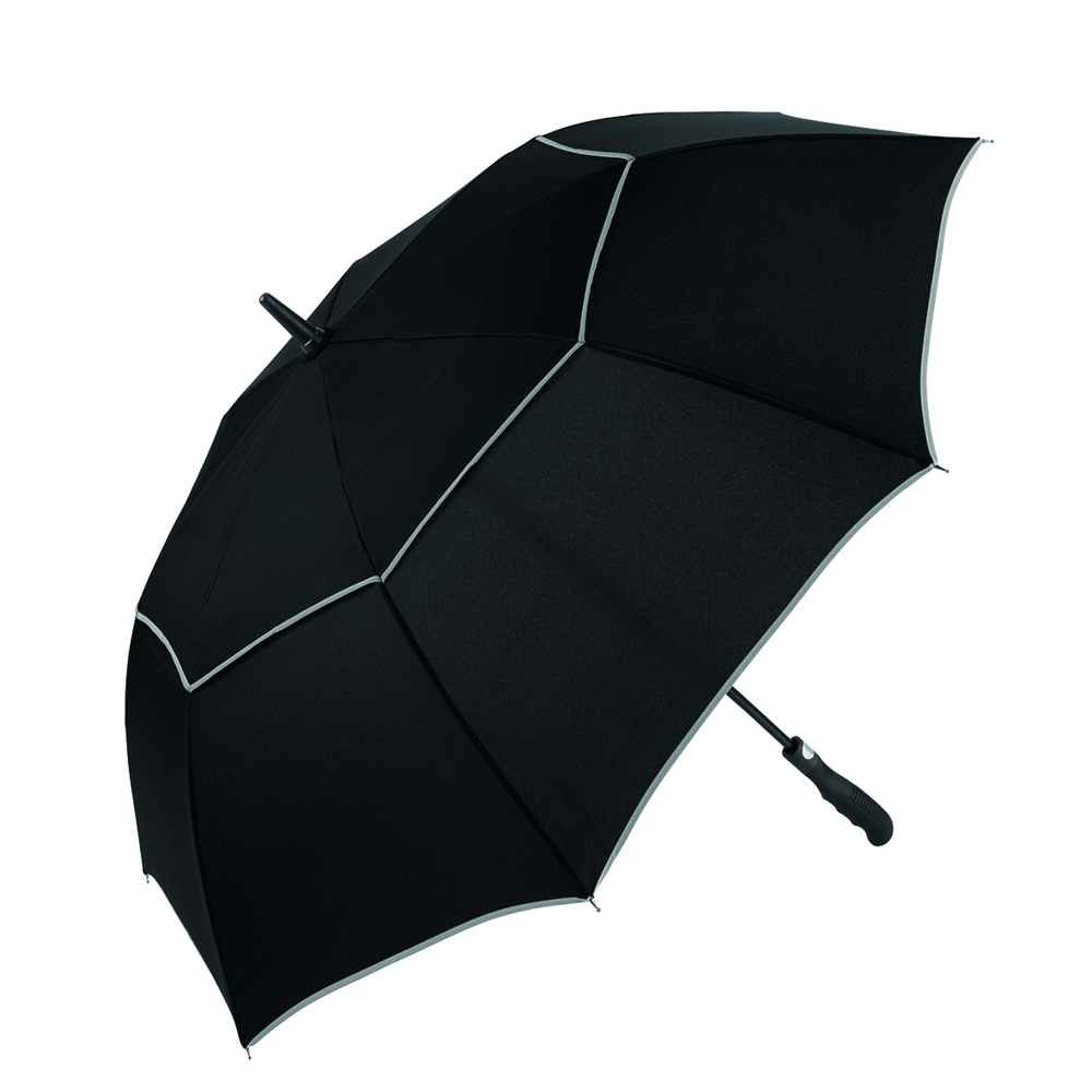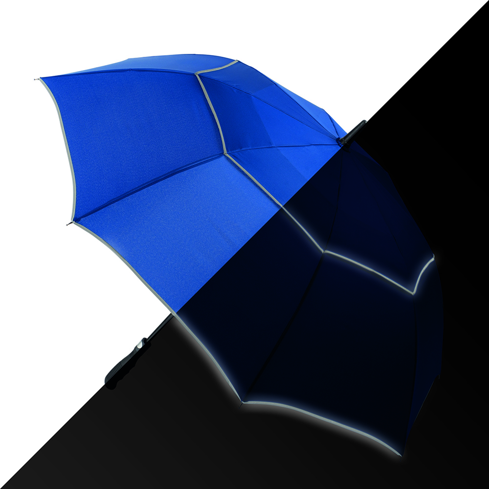Der Schirm bietet eine Bespannung aus 190T Pongee mit zwei reflektierenden Bordüren für verbesserte Sichtbarkeit. Mit einem Durchmesser von ca. 113 cm bietet er optimalen Schutz vor Wind und Regen. Im geschlossenen Zustand misst der Schirm ca. 87 cm in der Länge. Die Automatikfunktion ermöglicht ein schnelles Öffnen. Der Schirm hat 8 Segmente und ist mit einer Windproof-Funktion ausgestattet, die ihn auch bei starkem Wind stabil hält. Der gummierte Profilgriff in schwarz sorgt für einen sicheren und komfortablen Halt.
