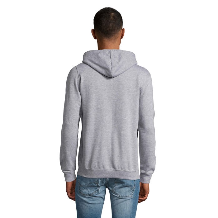 SOL'S STONE Unisex, Hoodie/Kapuzenjacke mit durchgehendem Reißverschluss und 2 Känguru-Taschen auf der Vorderseite. Kapuze mit Ton-in-Ton-Kordelzug, Rippenbündchen am Saum und an den Ärmeln. Seitennähte. No Label. Material: 260g/m², angerautes Material aus 50 % Baumwolle - 50 % Polyester.