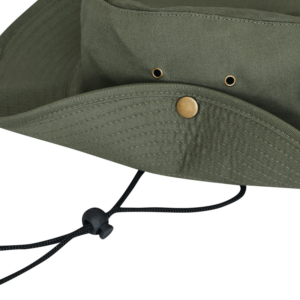 Safarihut SUNDALE: Krempe mittels Druckknopf seitlich hochklappbar, 4 Luftlöcher aus Metall, Kinnband mit Kunststoffstopper zum Anpassen an die Kopfgröße