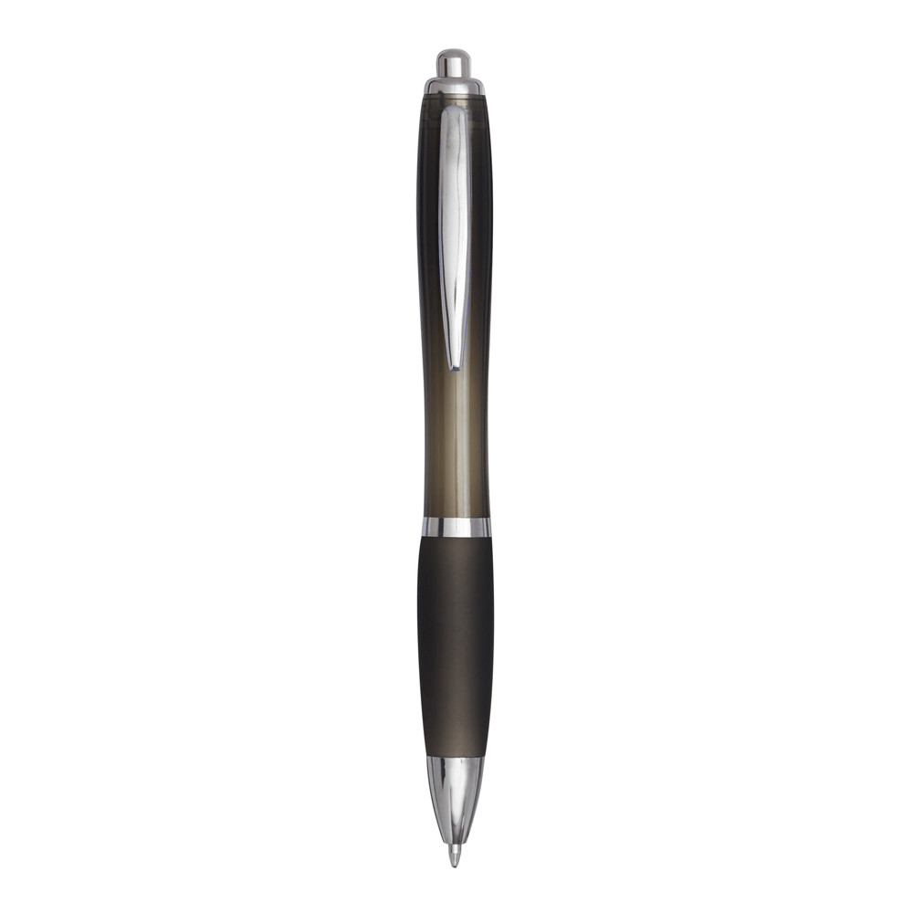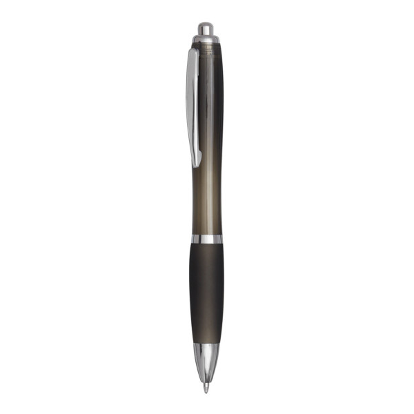Kugelschreiber SWAYRABS: mit Schaft in taillierter Form aus recyceltem Kunststoff, gummierter Griffzone, Druckmechanismus, Großraummine, blauschreibend