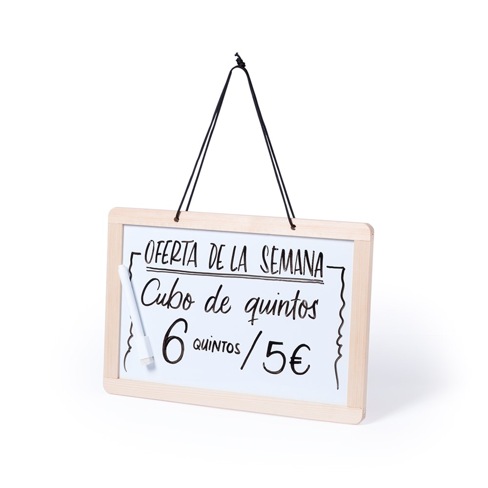 Beidseitig nutzbare Tafel zum Aufhängen, mit 2 verschiedenen Seiten: traditionelle Kreidetafel mit 3 Kreidestücken auf einer und Whiteboard mit Marker auf der anderen Seite. Mit doppelseitigem Radiergummi für Kreide und Marker.