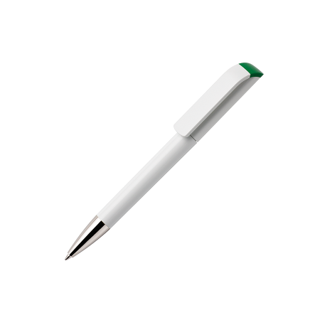 Maxema Kugelschreiber TAG TA1 B CR, Drehmechanismus-Kugelschreiber mit glänzend weißem Gehäuse und Clip, verchromtem Spitzenstück und glänzend farbigem Element über dem Clip. Ausgestattet mit einer Jumbo-Mine mit blauer Dokumental-Tinte für bis zu 2.500 Meter Schreibvergnügen. Das Element ist in nicht weniger als 10 Farben erhältlich. Ab 2.000 Stück farblich untereinander kombinierbar.