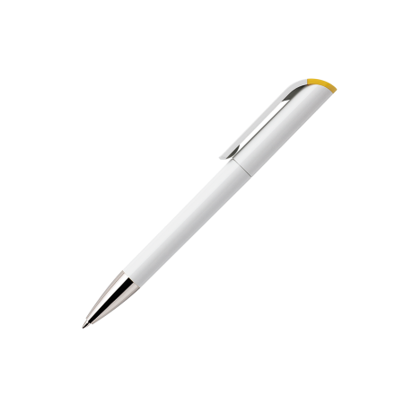 Maxema Kugelschreiber TAG TA1 B CR, Drehmechanismus-Kugelschreiber mit glänzend weißem Gehäuse und Clip, verchromtem Spitzenstück und glänzend farbigem Element über dem Clip. Ausgestattet mit einer Jumbo-Mine mit blauer Dokumental-Tinte für bis zu 2.500 Meter Schreibvergnügen. Das Element ist in nicht weniger als 10 Farben erhältlich. Ab 2.000 Stück farblich untereinander kombinierbar.