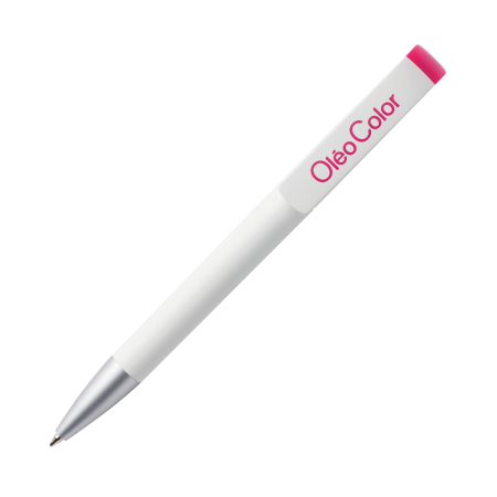 Der Maxema TAG TA1 MATT AL B ist ein Drehkugelschreiber mit einem mattweißen Gehäuse und Clip. Er verfügt über eine aluminiumfarbene Spitze und ein glänzend farbiges Element oberhalb des Clips. Der Stift ist mit einer Jumbo-Mine mit blauer Dokumental-Tinte ausgestattet, die für bis zu 2.500 Meter Schreibvergnügen reicht. Das farbige Element ist in sage und schreibe 17 Farben erhältlich. Ab einer Menge von 2.000 Stück können die Farben miteinander kombiniert werden. Hergestellt aus ABS-Kunststoff.