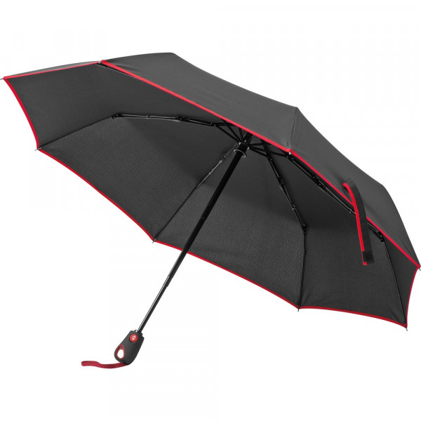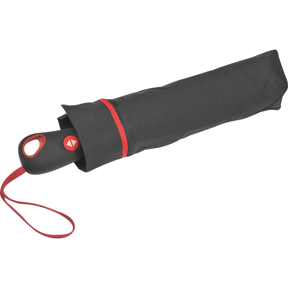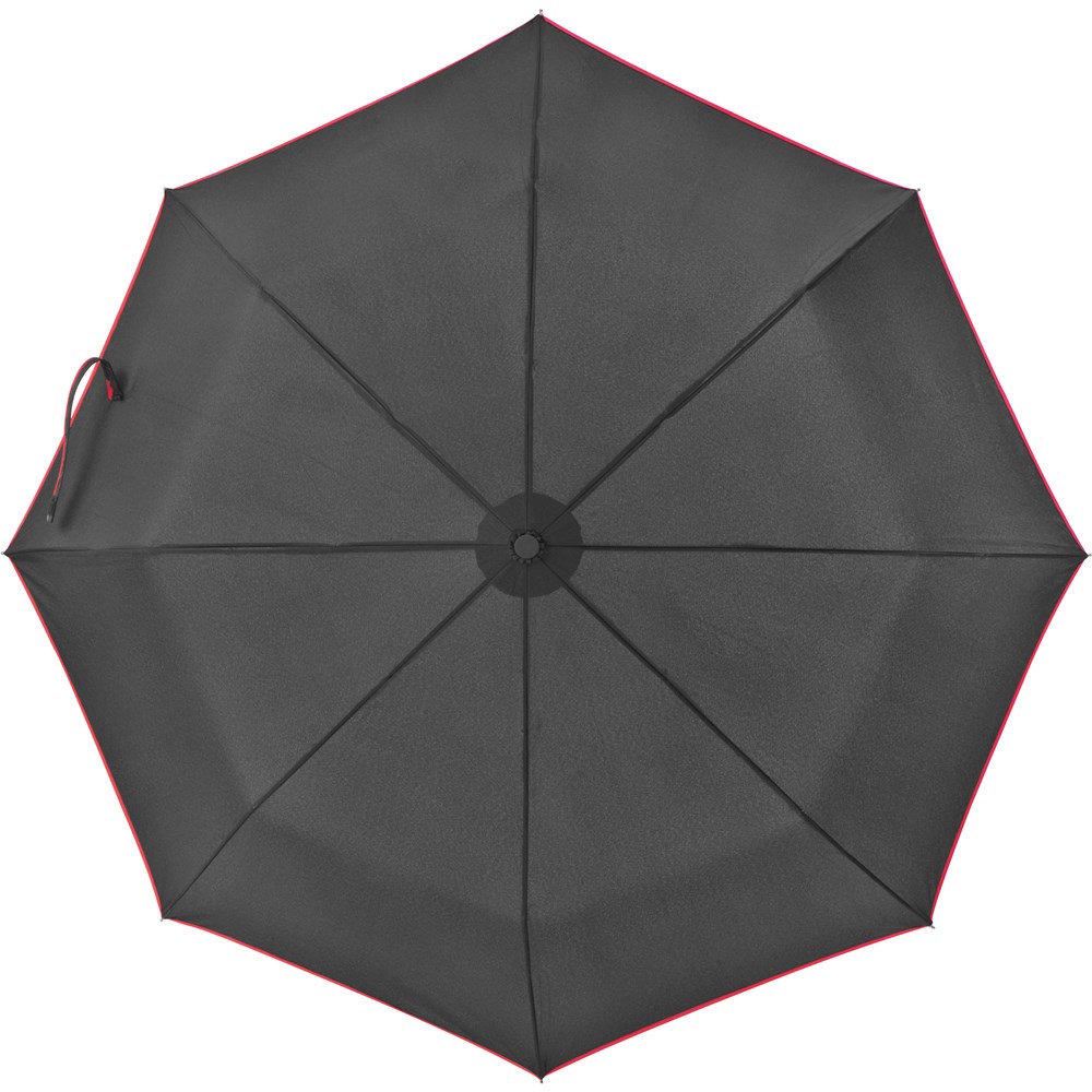 Unser schwarzer Taschenschirm mit farbigem Rand aus 190T Pongee und Fiberglas-Gestänge ist nicht... mehr