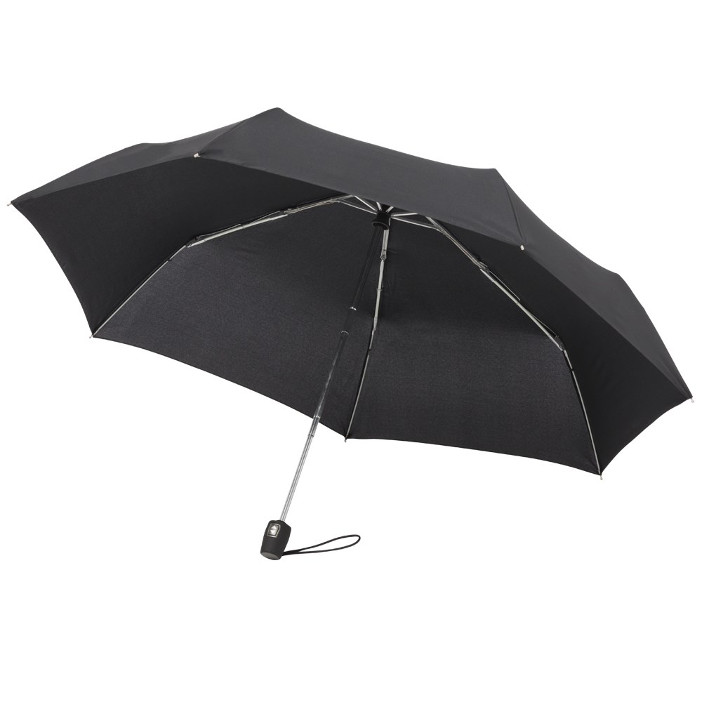 Taschenschirm CHELSEA - OKTAGON® - MINIsize - Doppelautomatik - Windproof - super leicht Kompakte Ausführung - ideal für die Handtasche - praktische Doppelautomatik Funktion zum komfortablen Öffnen und Schliessen - leichtes 7-Speichen Aluminiumgestell mit reversiblen, flexiblen Kunststoffspeichen für eine hohe Belastbarkeit und Flexibilität bei stärkerem Wind - stabiler 3-teiliger Teleskop-Stahlstock - schwarzer, matter 'soft-touch' Kunststoffgriff mit integrierter Automatik-Auslösetaste - Polyester-Pongee-Bespannung mit schmutz- und wasserabweisender Hydrophob-Ausrüstung - komfortables Klettverschlussband - Speichenlänge ca. 53cm - Durchmesser ca. 92cm - geschlossene Länge ca. 26cm - Gewicht ca. 250g