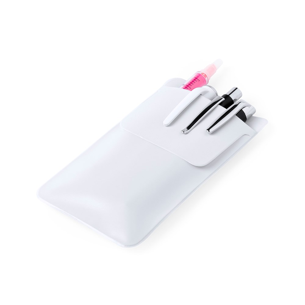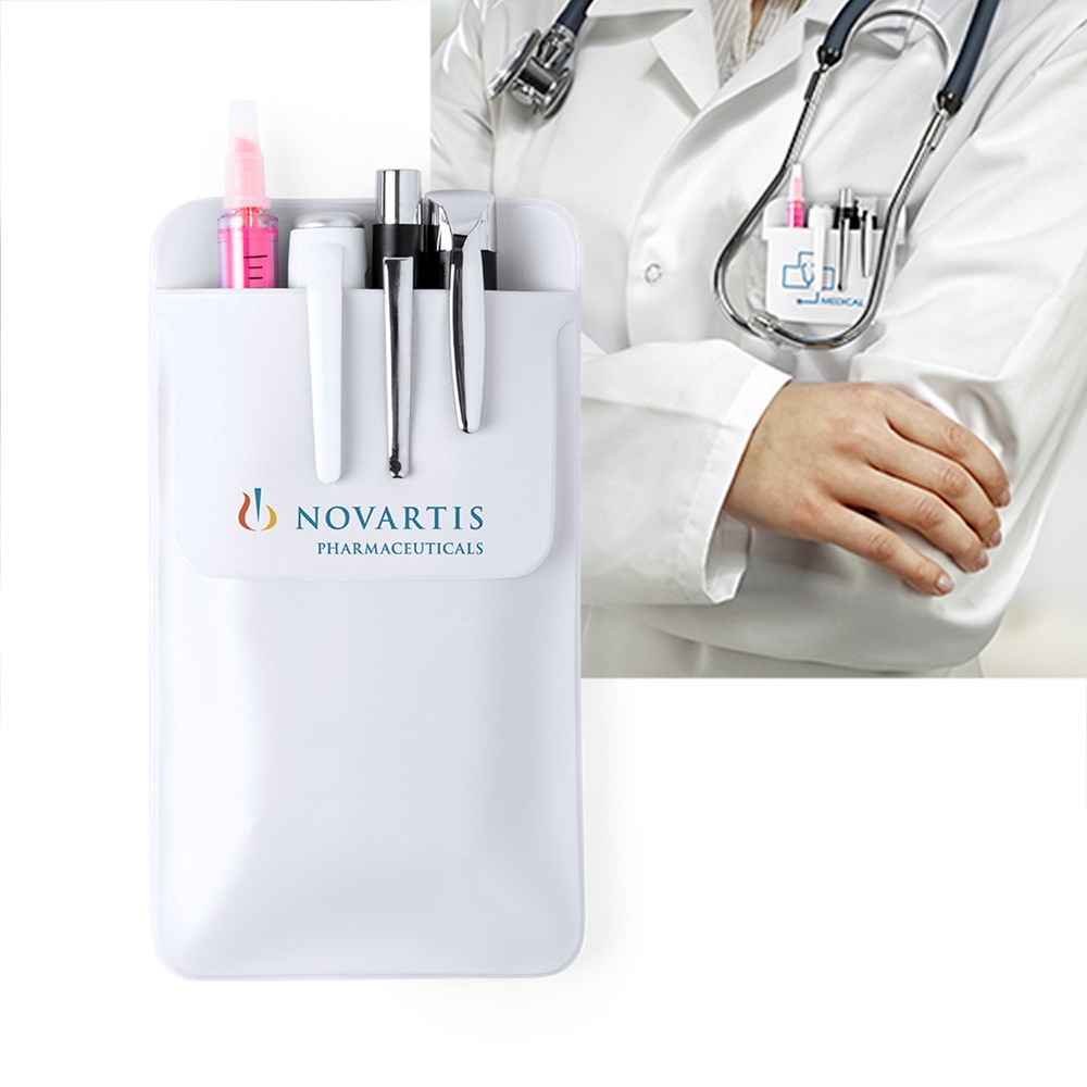 Taschenschutz für Stifte und andere Utensilien. Hergestellt aus robustem, hitzeversiegeltem PVC. Mit Umschlagklappe für einfaches Bedrucken.