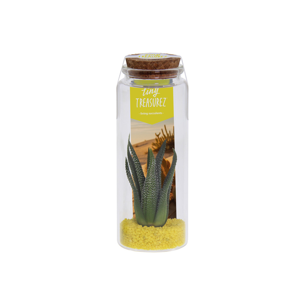 Die Tiny Treasurez® Message in a Bottle Large ist ein originelles grünes Giveaway, ideal als Werbegeschenk bei Veranstaltungen, Messen, Thementagen oder als Dankeschön. In der Glasflasche befinden sich eine Schicht Sand oder farbiger Kies, eine Infokarte über die Tiny Treasurez und natürlich die lebende Mini-Sukkulente. Die Standardkarte kann durch eine persönliche Botschaft ersetzt oder individuell gestaltet werden. Auch der Verschlussaufkleber auf der Flasche kann personalisiert werden.
