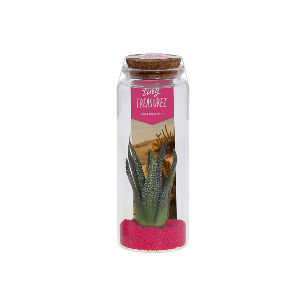 Die Tiny Treasurez® Message in a Bottle Large ist ein originelles grünes Giveaway, ideal als Werbegeschenk bei Veranstaltungen, Messen, Thementagen oder als Dankeschön. In der Glasflasche befinden sich eine Schicht Sand oder farbiger Kies, eine Infokarte über die Tiny Treasurez und natürlich die lebende Mini-Sukkulente. Die Standardkarte kann durch eine persönliche Botschaft ersetzt oder individuell gestaltet werden. Auch der Verschlussaufkleber auf der Flasche kann personalisiert werden.