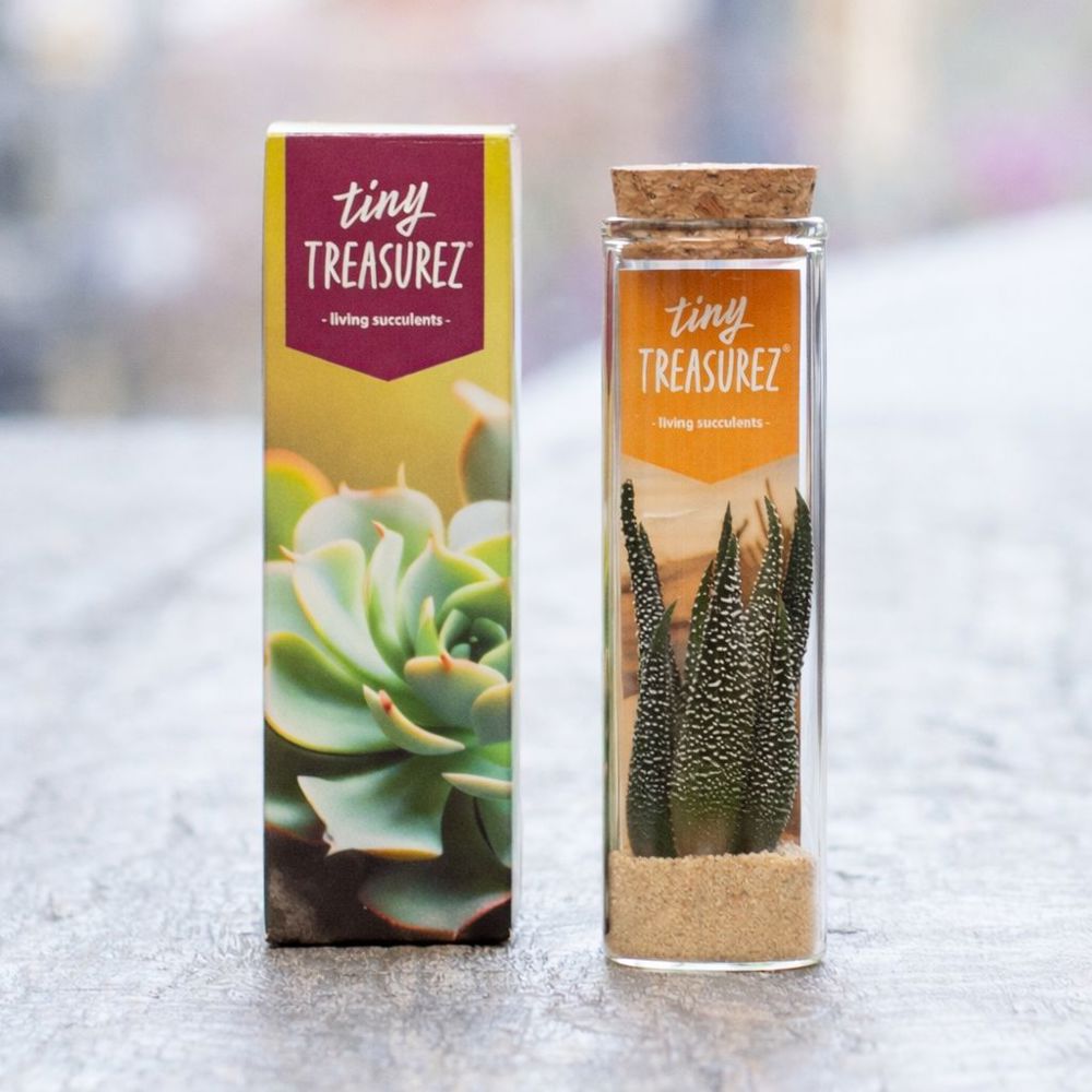 Tiny Treasurez® sind lebende Mini-Sukkulenten – kleine Schätze der Natur. Diese einzigartigen Pflanzen benötigen kaum Pflege, überstehen lange Trockenperioden und bleiben monatelang oder sogar jahrelang schön – ein kraftvolles Symbol für Wachstum, Widerstandsfähigkeit und Nachhaltigkeit.