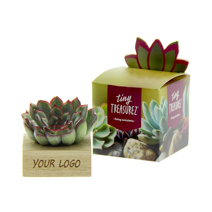 Die Tiny Treasurez® Single Wood in Giftbox ist das ideale Geschenk für Veranstaltungen oder Messen. Der FSC-zertifizierte Holzständer dient als Halter für die Mini-Sukkulente, die mit Ihrem Logo, Slogan oder Ihrer Botschaft personalisiert werden kann. Zusammen in einer schönen Geschenkbox verpackt, ist es super einfach zu verteilen. Diese Kombination aus Holz und Tiny Treasurez® ist ein perfektes Item für den Schreibtisch. Auf der Schachtel steht auch die Geschichte hinter Tiny Treasurez®, damit der Empfänger weiß, welches einzigartige Geschenk er erhält. Die lebende Pflanze bleibt lange im Blickfeld des Empfängers, da sie nicht einfach in einem Schrank oder Mülleimer landet. Personalisieren Sie sie mit einer Botschaft auf dem Produkt oder mit einer Karte für einen bleibenden Eindruck. Bringen Sie etwas zusätzliche grüne Dekoration in Ihr Zuhause mit unseren Tiny Treasurez®.