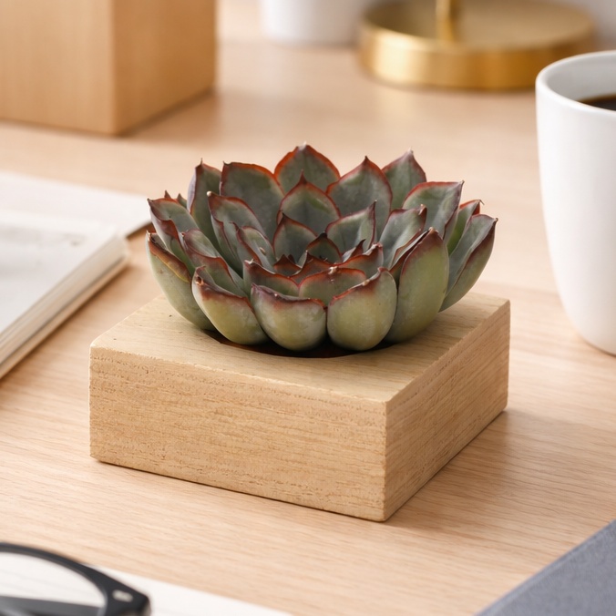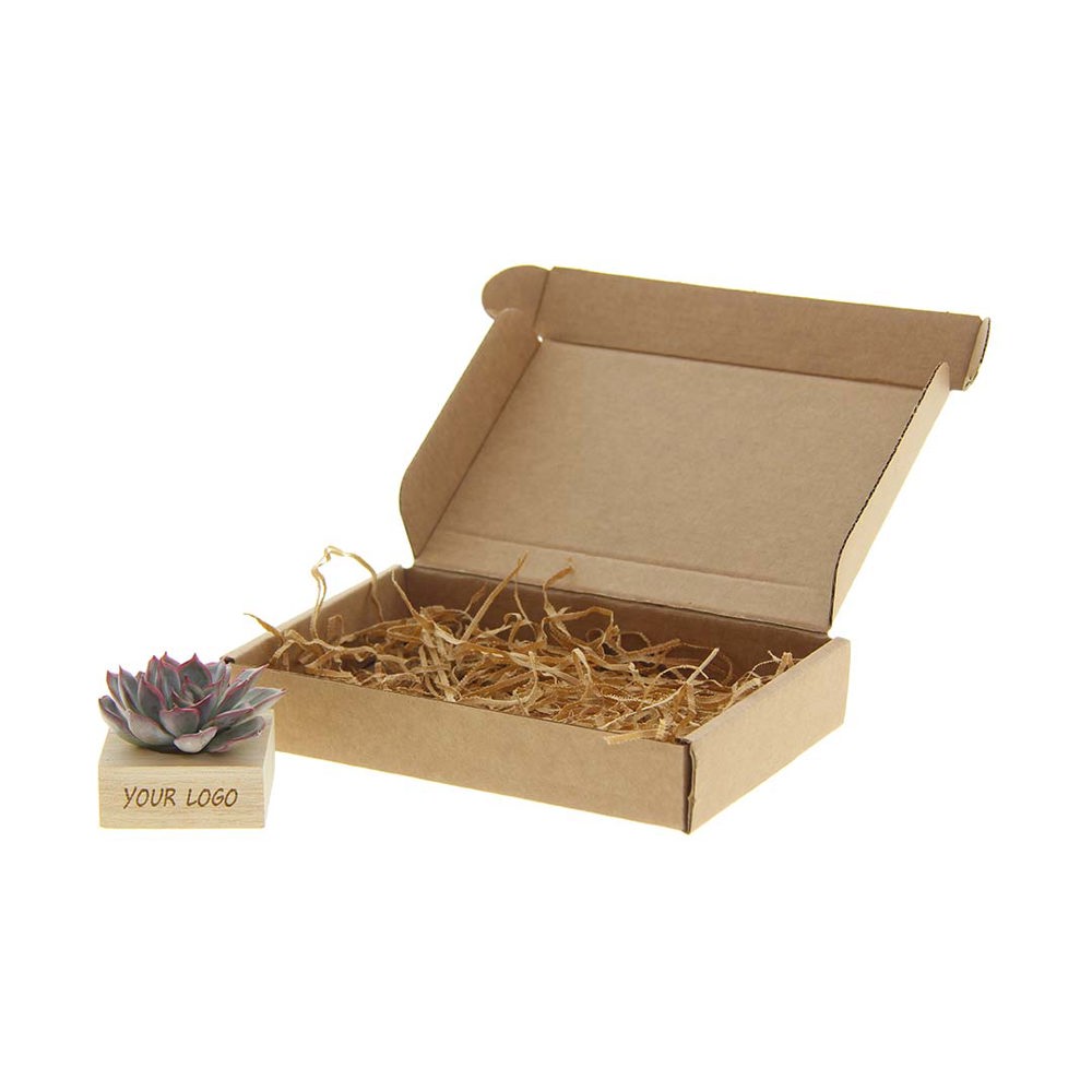 Der FSC-zertifizierte Holzständer dient als Halter für die Mini-Sukkulente, die mit Ihrem Logo, Slogan oder Ihrer Botschaft personalisiert werden kann. Das Ganze ist schön in einer Schachtel verpackt. Diese Kombination aus Holz und Tiny Treasurez® ist ein perfektes Item für den Schreibtisch. Auf der Karte steht die Geschichte hinter Tiny Treasurez®, damit der Empfänger weiß, welches einzigartige Geschenk er erhält. Die lebende Pflanze bleibt lange im Blickfeld des Empfängers, da sie nicht einfach in einem Schrank oder Mülleimer landet. Personalisieren Sie sie mit einer Botschaft auf dem Produkt oder mit einer Karte für einen bleibenden Eindruck. Bringen Sie etwas zusätzliche grüne Dekoration in Ihr Zuhause mit unseren Tiny Treasurez®.
