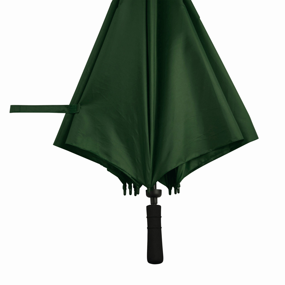 Sturmschirm TORNADO: Fiberglasstock, Doppelmetallspeichen und Rückholautomatik-Feder, Kunststofftips, Moosgummigriff, Polyester-Bespannung, Schließband mit Klettverschluss