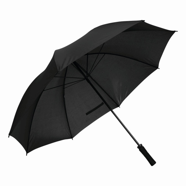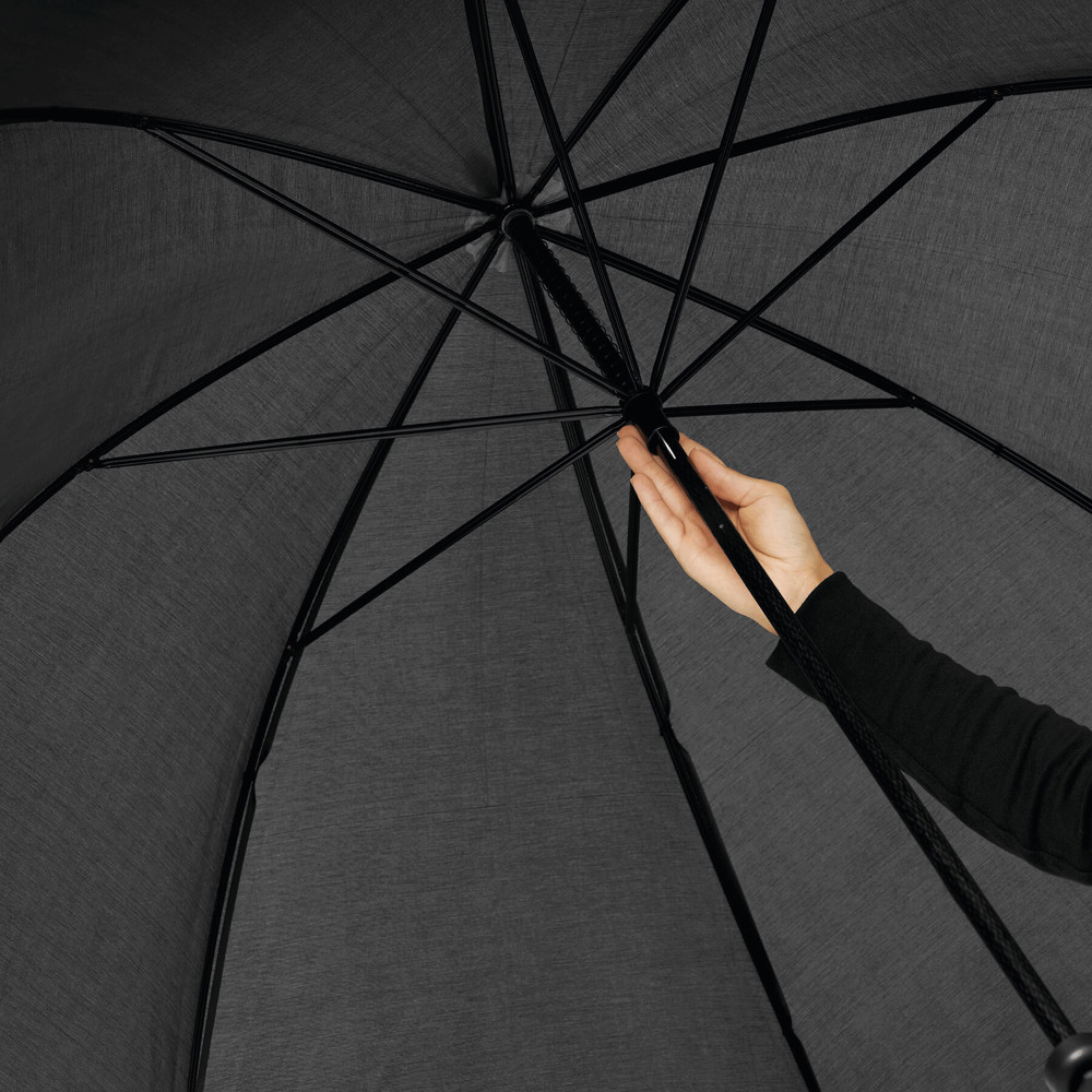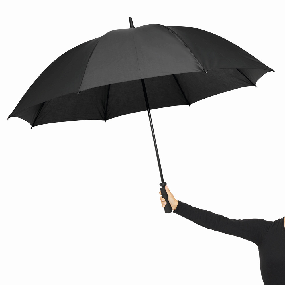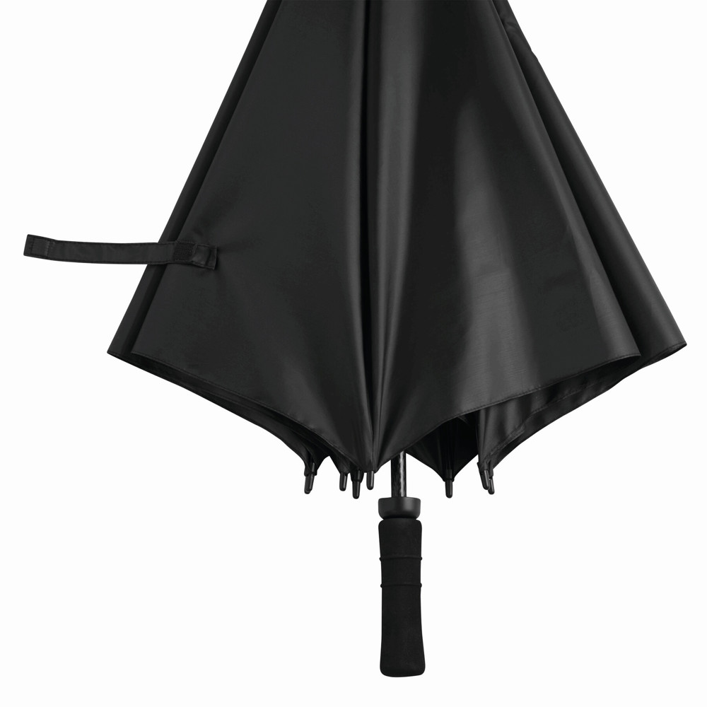 Sturmschirm TORNADO: Fiberglasstock, Doppelmetallspeichen und Rückholautomatik-Feder, Kunststofftips, Moosgummigriff, Polyester-Bespannung, Schließband mit Klettverschluss
