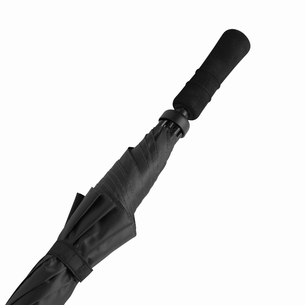 Sturmschirm TORNADO: Fiberglasstock, Doppelmetallspeichen und Rückholautomatik-Feder, Kunststofftips, Moosgummigriff, Polyester-Bespannung, Schließband mit Klettverschluss