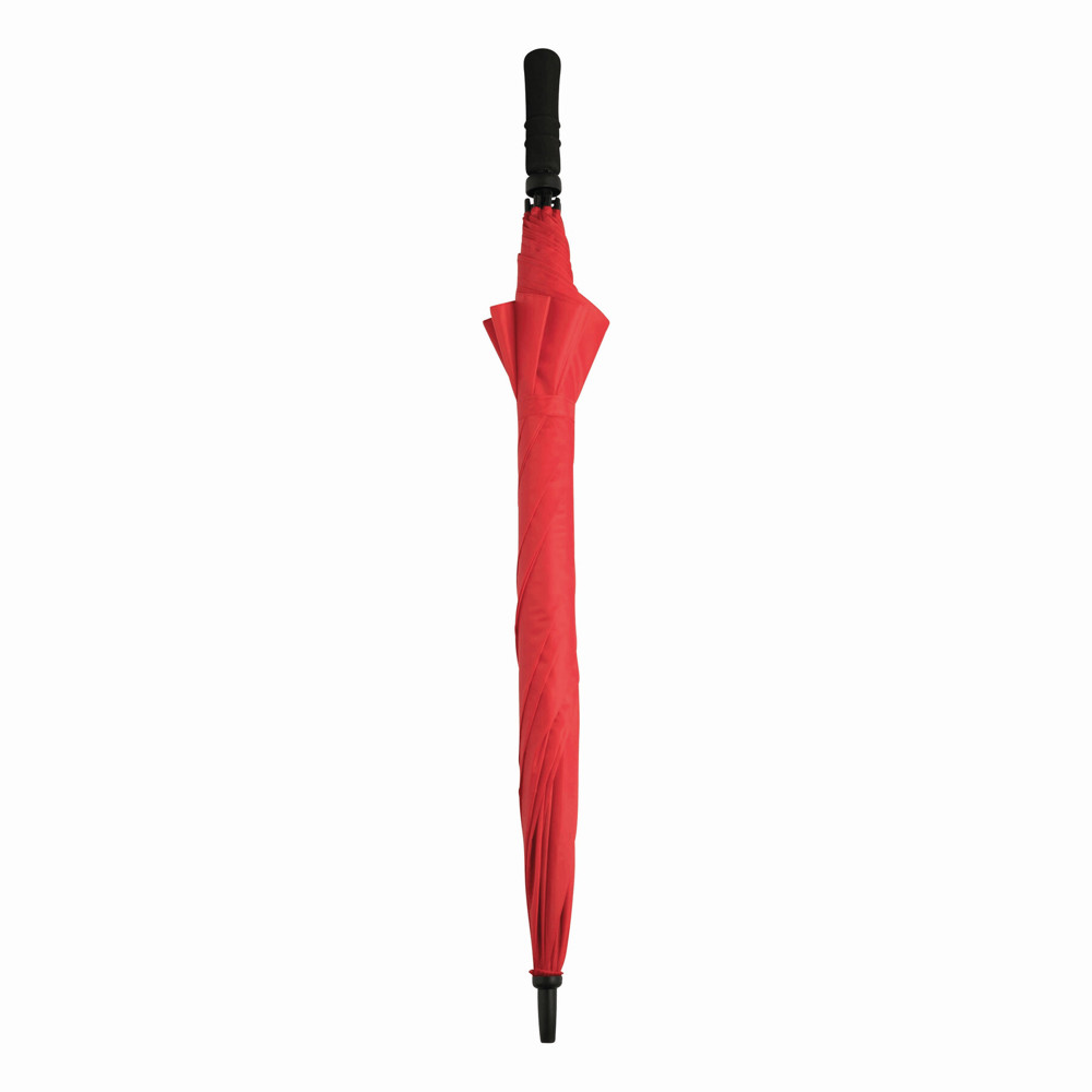Sturmschirm TORNADO: Fiberglasstock, Doppelmetallspeichen und Rückholautomatik-Feder, Kunststofftips, Moosgummigriff, Polyester-Bespannung, Schließband mit Klettverschluss