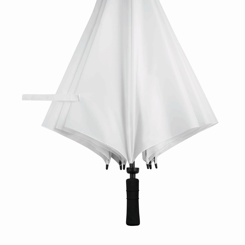 Sturmschirm TORNADO: Fiberglasstock, Doppelmetallspeichen und Rückholautomatik-Feder, Kunststofftips, Moosgummigriff, Polyester-Bespannung, Schließband mit Klettverschluss