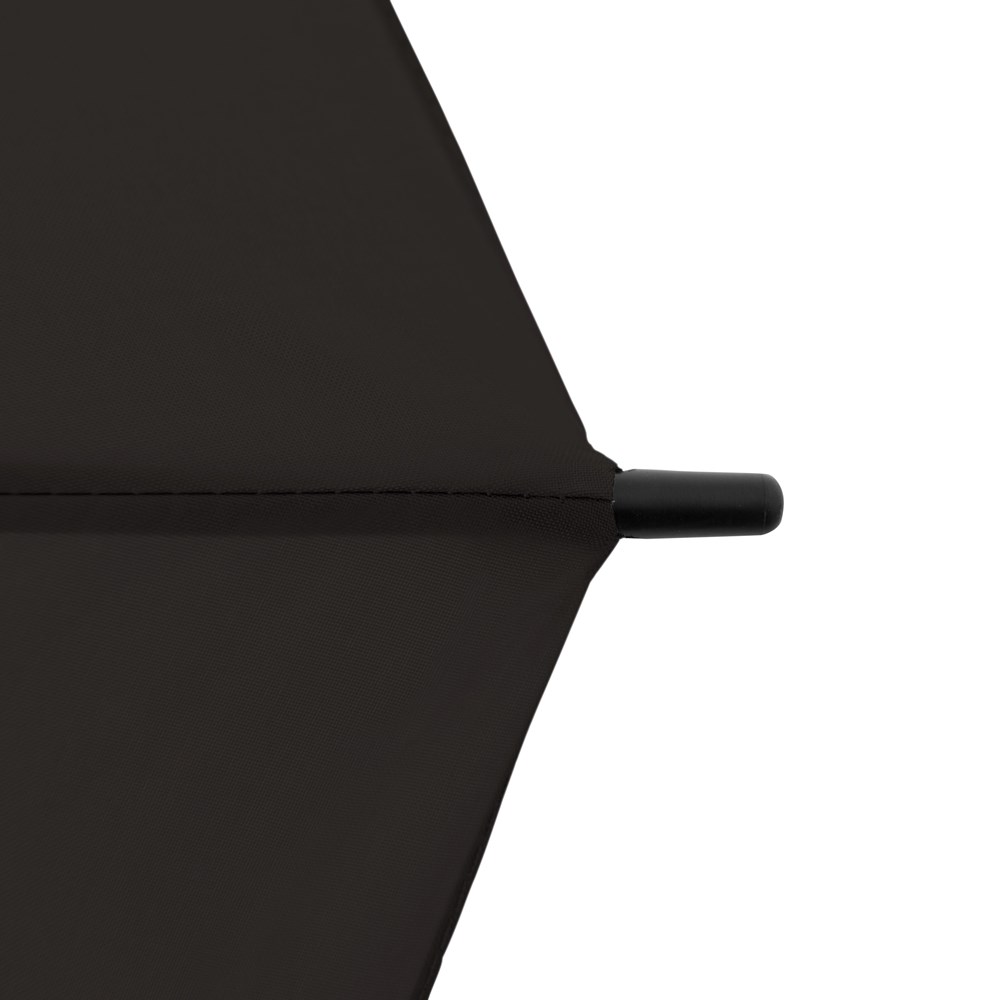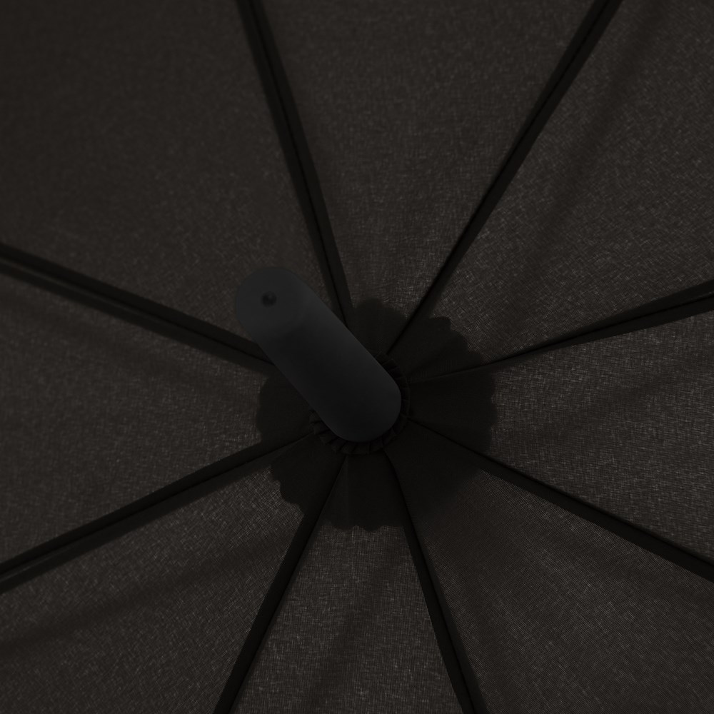 Material: Pongee, Stahlstock, schwarze Fiberglasschienen, mattschwarzer Rundhakengriff