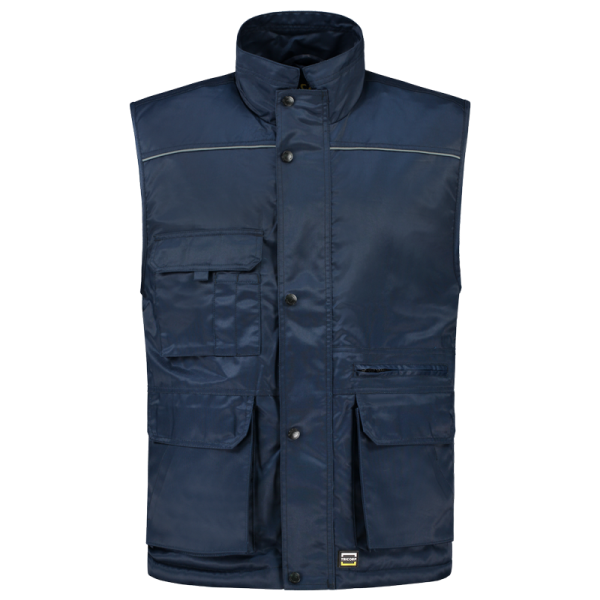 Die Funktionsweste Industrie hat ein fest integriertes Kunstfell-Futter. Durch die Reflexbiesen vorne und hinten bietet der Bodywarmer beste Sichtbarkeit. Durch die spezielle Beschichtung ist die Weste schmutz- und wasserabweisend. Mit der Brusttasche, zwei Seitentaschen, zwei verschließbaren Pattentaschen und einer verschließbaren, horizontalen Eingrifftasche bietet dieser Artikel jede Menge Stauraum. Die Weste ist aus 70% Polyester und 30% Baumwolle gefertigt. Gewicht: 250 g/m2.