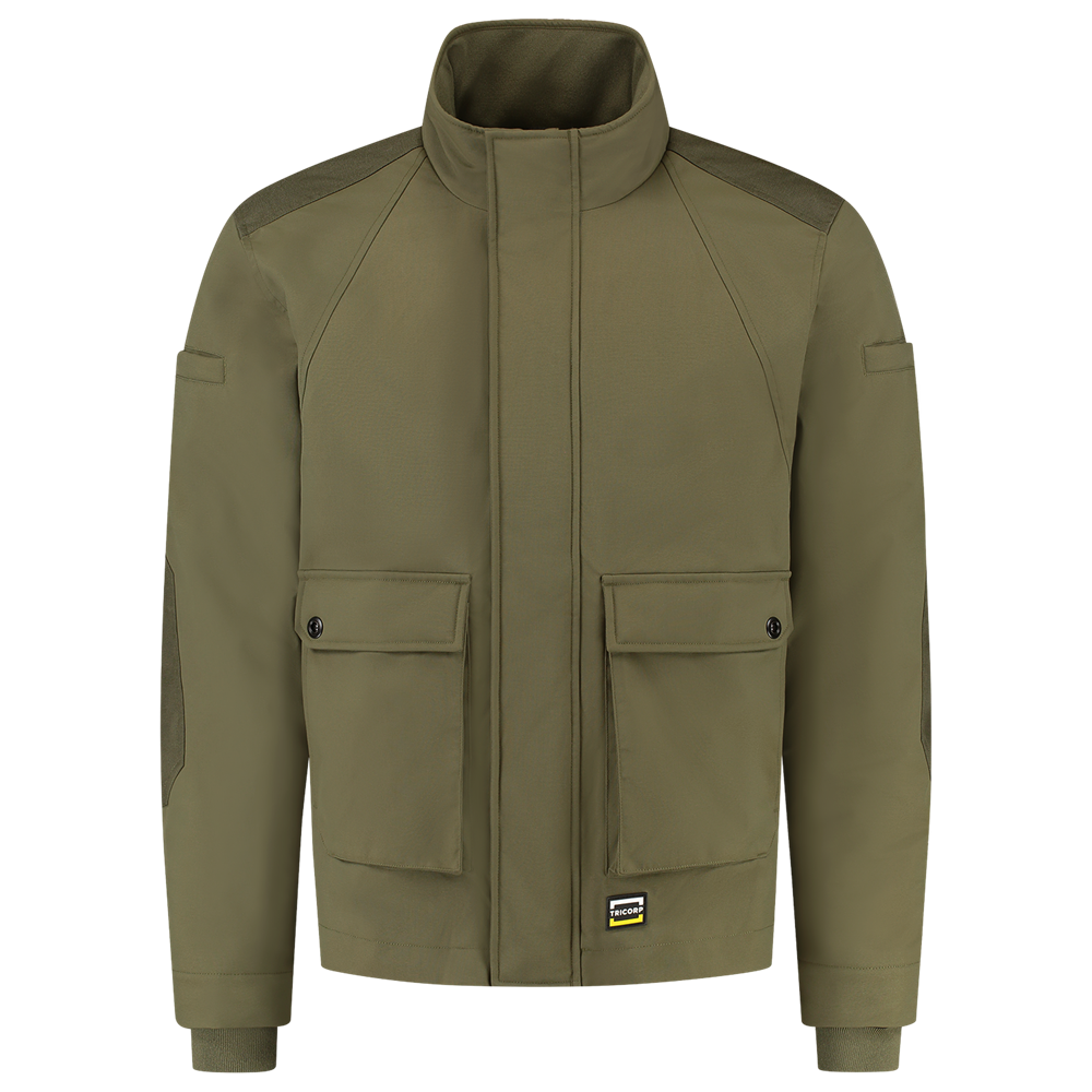 Diese neue Pilotenjacke von Tricorp ist die perfekte Arbeitsjacke. Das moderne und aktualisierte Design sorgt dafür, dass Sie und Ihr Team repräsentativ aussehen und bequem arbeiten können. Die Pilotenjacke hat einen bequemen Rippkragen am Hals. Die Ärmelabschlüsse sind ebenfalls gerippt. Die Jacke hat einen taillierten Rippenbund. Der Reißverschluss ist mit einer Lasche abgedeckt, die mit Druckknöpfen geschlossen wird. Im Reißverschluss befindet sich außerdem eine verdeckte Tasche. Die Taschen auf der Vorderseite haben sowohl obere als auch seitliche Öffnungen. An beiden Oberarmen befinden sich außerdem noch zwei kleine Taschen. Es gibt also jede Menge Stauraum! Auf der Rückseite und an den Handgelenken wurde ein zusätzlicher reflektierender Print angebracht.