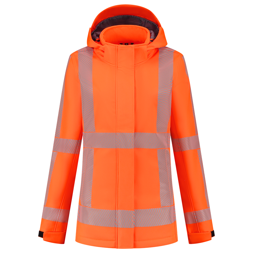 Bei der Softshelljacke Damen aus der Revisible-Kollektion handelt es sich um eine robuste und sportliche Tricorp-Arbeitsjacke. Diese winddichte Arbeitsjacke zeichnet sich durch hohe Atmungsaktivität aus und ist durch eine fluorfreie (PFAS-freie) Durable Water Repellent-Imprägnierung wasserabweisend. Sichtbarkeit ist gewährleistet gemäß der Norm EN ISO 20471 Klasse 3 (Größe XS erreicht Klasse 2). Diese Arbeitsjacke ist aus GRS-zertifiziertem, wiederverwertetem Polyester hergestellt und bietet einen angenehmen Tragekomfort aufgrund mechanischer Dehnbarkeit. Zur Erhöhung des Tragekomforts sind die Reflexstreifen in Segmente unterteilt, was auch der Langlebigkeit des Artikels zugutekommt, da die Streifen nicht so leicht einreißen.