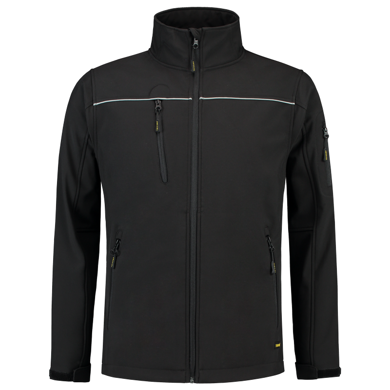 Eine Softshell zeichnet sich durch einen hohen Tragekomfort sowie wind- und wasserdichte Eigenschaften aus. Das Material besteht aus gewebtem Polyester. Die PU-Zwischenschicht sorgt für optimale Atmungsaktivität, sodass die Feuchtigkeit nach außen weitergeleitet und dem Schwitzen in der Jacke entgegen gewirkt wird. Das dehnbare Gewebe garantiert eine gute Bewegungsfreiheit. Die Softshelljacke hat einen Stretch-Anteil für optimalen Tragekomfort. Die Reflexbiesen auf der Brust gewährleisten eine gute Sichtbarkeit. Der Bund ist durch eine elastische Kordel mit Stoppern und die Ärmelbündchen mit Klett verstellbar. Die Softshelljacke hat an der Vorderseite 4 Taschen und bietet daher viel Stauraum. Zur Vermeidung des Durchsatzes mit Farbe empfehlen wir, lediglich Drucktechniken zu nutzen, die für Softshellstoffe geeignet sind.