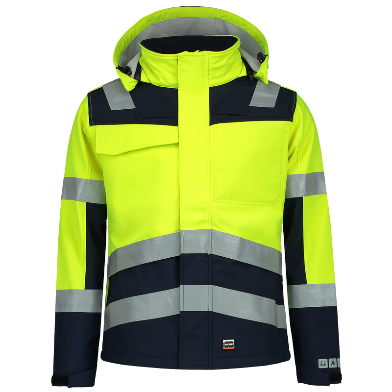 Die Softshelljacke Multinorm Bicolor aus der Tricorp Safety-Kollektion besteht aus 60% Modacryl, 38% Polyester und 2% Sonstige Fasern. Gewicht: 350 g/m2. Dieses Produkt ist nach EN ISO 11612 (Schutz gegen Hitze und Flammen) und EN 1149 (Elektrostatische Eigenschaften) zertifiziert. Durch die EN ISO 20471-Zertifizierung bietet das Kleidungsstück beste Sichtbarkeit bei Tag, Dämmerung und Nacht. Zur Vermeidung des Durchsatzes mit Farbe empfehlen wir, lediglich Drucktechniken zu nutzen, die für Softshellstoffe geeignet sind.