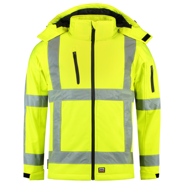 Diese zweifarbige Softshelljacke mit hoher Sichtbarkeit erfüllt die Rijkswaterstaat-Richtlinien (RWS) und ist aus atmungsaktivem, winddichtem und wasserabweisendem Material gefertigt. Die dicht gewebten Schichten bieten einen hervorragenden Wind- und Wetterschutz, weichen Griff und hohen Tragekomfort. Hohe Sichtbarkeit nach EN ISO 20471: 2013, Klasse 3. Mit langlebigen genähten Streifen. Dank der luftdurchlässigen Zwischenschicht auf Basis von Polyurethan überzeugt die Jacke mit hoher Atmungsaktivität. Diese Jacke verfügt über eine abnehmbare Kapuze, Taschen auf der Vorderseite und eine Napoleon-Tasche. Zur Vermeidung des Durchsatzes mit Farbe empfehlen wir, lediglich Drucktechniken zu nutzen, die für Softshellstoffe geeignet sind.