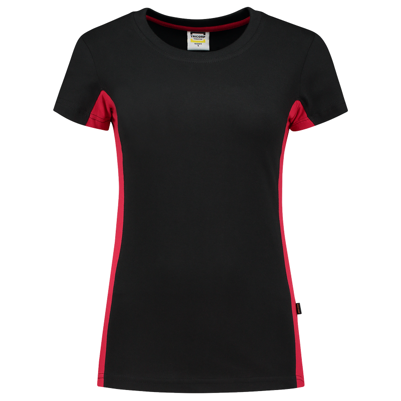 Klassisches zweifarbiges Workwear T-Shirt für Damen von Tricorp aus 100% gekämmter Baumwolle. Der anschmiegsame Kragen ist aus hochwertigem Rippstrick (4-fach gelegt) gefertigt. Das zweifarbige T-Shirt ist in 5 verschiedenen Farbkombinationen erhältlich.