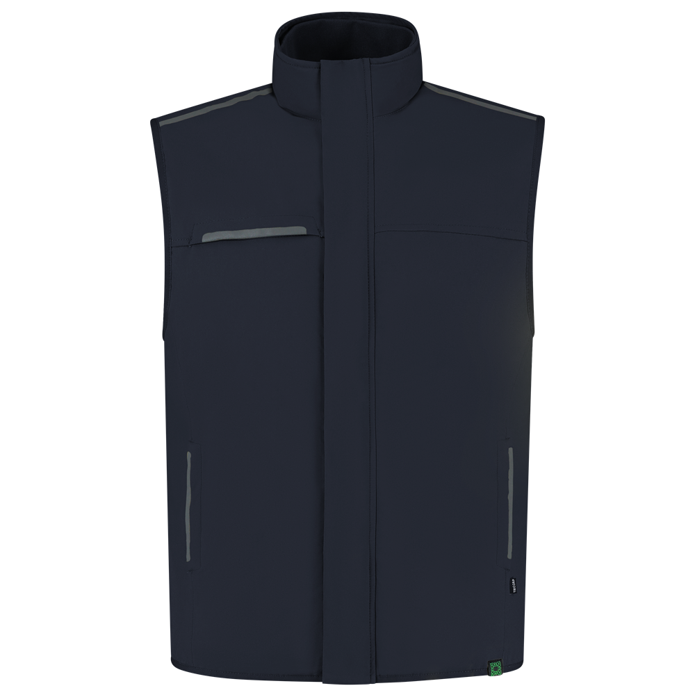 Mit diesem modernen Bodywarmer bleiben Sie flexibel und warm! Leicht und dank der Verwendung von recyceltem Polyester sehr langlebig. Die perfekte Ergänzung für Ihr Arbeitsoutfit.Der Bodywarmer hat einen taillierten, gerippten Saum, der ihm den modernen "Puffer-Look" verleiht. Die Armausschnitte sind mit einem elastischen Band versehen. Der Reißverschluss ist mit einer Lasche abgedeckt, die mit Druckknöpfen geschlossen wird. Die Brusttasche kann mit einem Reißverschluss geschlossen werden, ebenso wie die beiden Taschen auf der Vorderseite. In der Brusttasche befindet sich außerdem eine Schlaufe, an der Sie Ihren Ausweishalter befestigen können. Entlang des Tascheneingriffs und auf dem Rückenteil wurde ein zusätzlicher reflektierender Print aufgebracht. Die linke Vorderseite und die Rückseite sind aus Contrast Softshell gefertigt und bieten zusätzliche Möglichkeiten zum Bedrucken. Vervollständigen Sie Ihr Outfit mit den anderen Artikeln aus der Rewear-Kollektion.