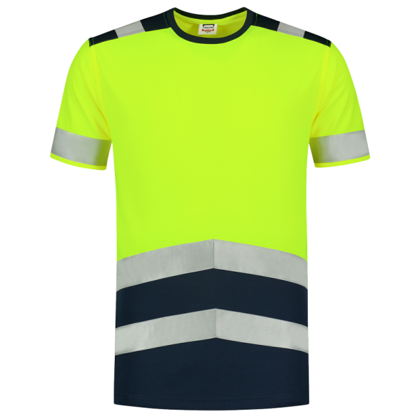 Das Warnschutz T-Shirt Bicolor ist Teil der Tricorp 20/20 Vision Kollektion. Das T-Shirt besteht aus 50% Polyester und 50% CoolDry Polyester und bietet Schutz vor der Sonne mit einem UPF40 +. Das CoolDry-Material zeichnet sich durch feuchtigkeitsregulierende und atmungsaktive Eigenschaften aus. Das T-Shirt ist nach EN ISO 20471:2013 Klasse 1 zertifiziert. Dadurch ist der Träger bei Tag und Nacht sichtbar und geschützt. Das T-Shirt ist mit zusätzlichen Reflexstreifen an den Ärmeln ausgestattet, wodurch noch mehr Sichtbarkeit garantiert ist. Das T-Shirt ist bei 60˚C waschbar und wird so hygienisch rein.