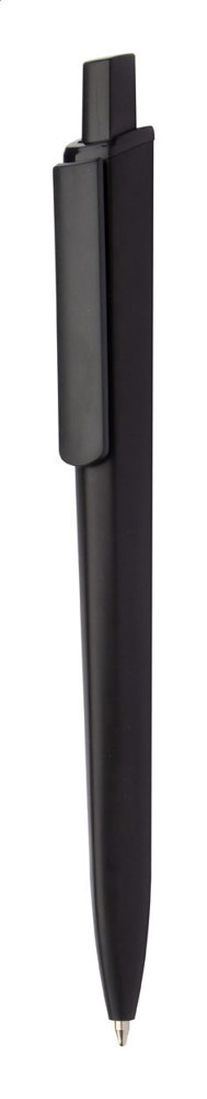 Kunststoff-Kugelschreiber mit matter Metallic-Oberfläche und schwarzen Elementen, blauschreibend. mehr