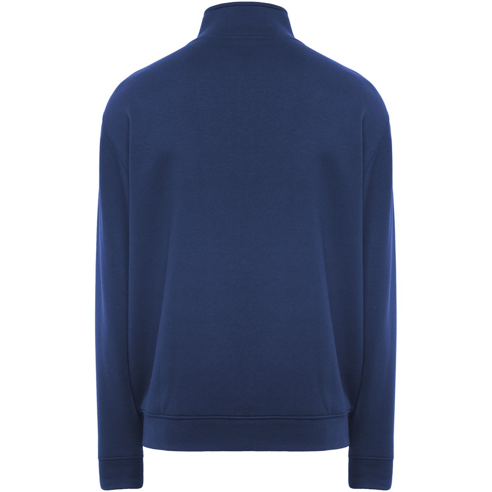 Pullover mit Stehkragen und passendem Reißverschluss. Passender Innenkragen mit verstärkten und verdeckten Nähten. Bündchen und Taille aus 1×1-Rippstrick. Herausnehmbares Etikett. Das männliche Modell ist 185 cm groß und trägt Größe L, das weibliche Modell ist 168 cm groß und trägt Größe S.
