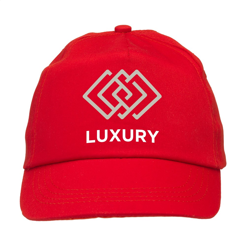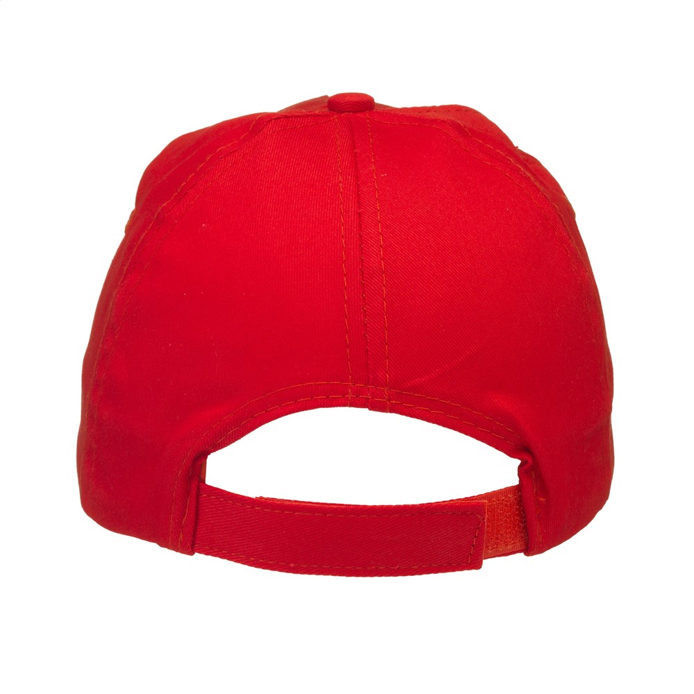 Baseballkappe aus 100% Baumwolle mit vorgeformtem Schirm und verstellbarem Verschluss.