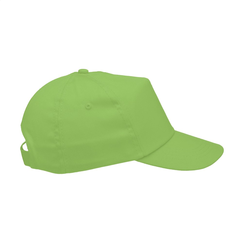 Baseballkappe aus 100% Baumwolle mit vorgeformtem Schirm und verstellbarem Verschluss.