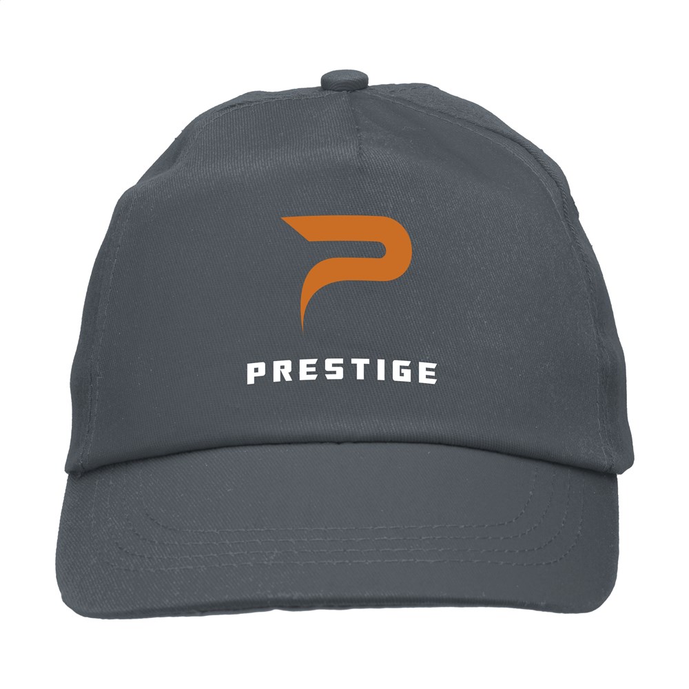 Baseballkappe aus 100% Baumwolle mit vorgeformtem Schirm und verstellbarem Verschluss.