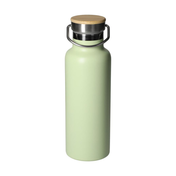 Isolierflasche im minimalistischen Design - Perfekt für Arbeit, Yoga, Wandern, Reisen und Co. Leichte, doppelwandige Flasche aus Edelstahl mit einem Schraubdeckel. Dieser verfügt über eine Silikondichtung, einen Tragegriff für den leichteren Tansport und einer Deckelkappe aus Bambus- Holz. Perfekt dazu passt der Siebeinsatz 01719 (Achtung: Passt nur bei den schwarzen und silbernen Flaschen). Füllmenge: 0,5 Liter.