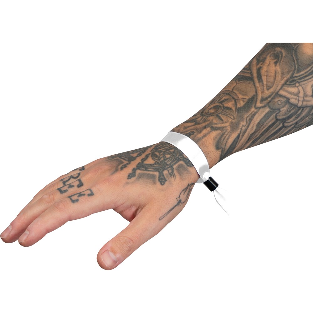 Veranstaltungsarmband aus Polyester mit Sicherheitsverschluß in vielen verschiedenen Farben. Der Verschluss verfügt innen über Widerhaken, wodurch sich dieser zwar zuziehen aber nicht mehr aufziehen lässt. Ihre Werbung wird auf das Bändchen gedruckt.
