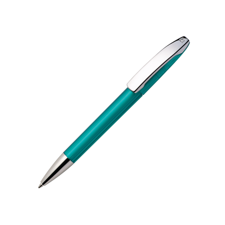 Maxema Kugelschreiber VIEW V1 30 CR, ein Dreh-Kugelschreiber mit einem glänzenden, farbigen, transparenten Gehäuse, einem verchromten Metallclip und einem verchromten Endstück. Ausgestattet mit einer Jumbo-Mine mit blauer Dokumental-Tinte für bis zu 2.500 Meter Schreibvergnügen. Ober- und Unterteil sind in nicht weniger als 10 Farben erhältlich und können ab 2.000 Stück farblich miteinander kombiniert werden.