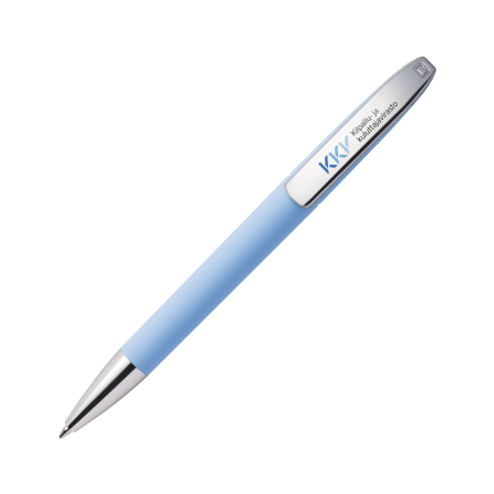 Maxema Kugelschreiber VIEW V1 GOM C CR, Dreh-Kugelschreiber mit farbigem Gehäuse, das mit einer Gummibeschichtung, einem verchromten Metallclip und einem verchromten Endstück ausgestattet ist. Ausgestattet mit einer Jumbo-Mine mit blauer Dokumental-Tinte für bis zu 2.500 Meter Schreibvergnügen. Ober- und Unterteil sind in bis zu 18 Farben erhältlich und können ab 2.000 Stück farblich miteinander kombiniert werden.